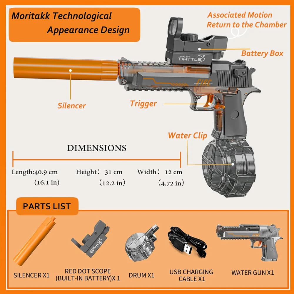 The new electric water gun eliminates the cumbersome battery installation and has strong power and large water output. The upgraded motor drive provides you with excellent water injection power. Whether you are shooting from a long distance or close range, this water gun can give you Bring surprises beyond your imagination.